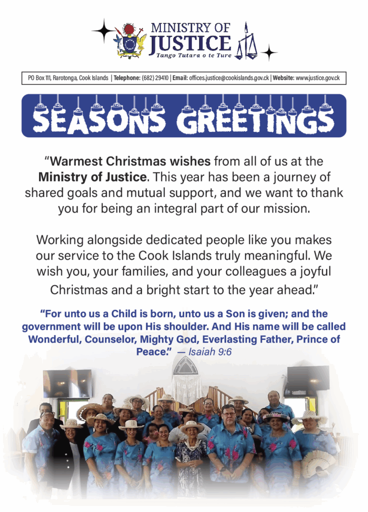 Read MorePUBLIC NOTICE The Public is hereby advised that the High Court (Land Division) will sit at Court House, Arutanga, Aitutaki on Monday 13th and Tuesday 14th February 2023 at 9am […]